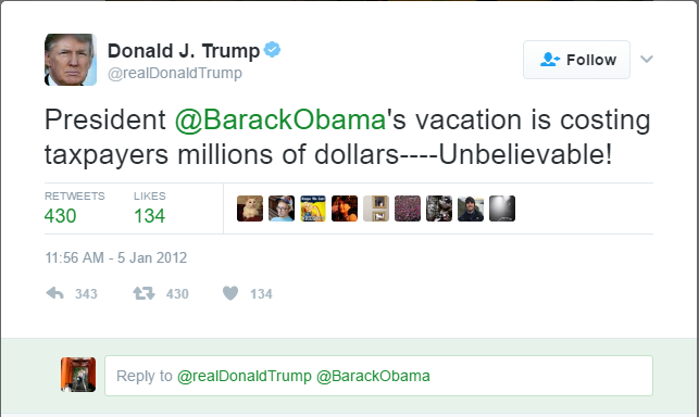 I’m sure the American public won’t belittle him the $3M+ it’s going to cost to fly him there and protect him. And that’s only fair, since Trump was so fair and understanding when his predecessor was enjoying a weekend away.